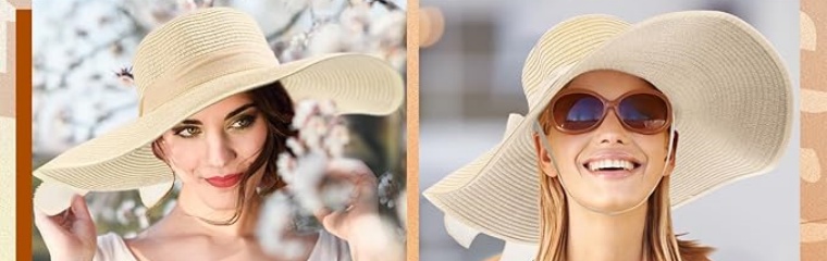 Beach Hats for Women, Wide Brim Sun Straw Hat for Women, Sun Hat UPF 50+ UV Protection