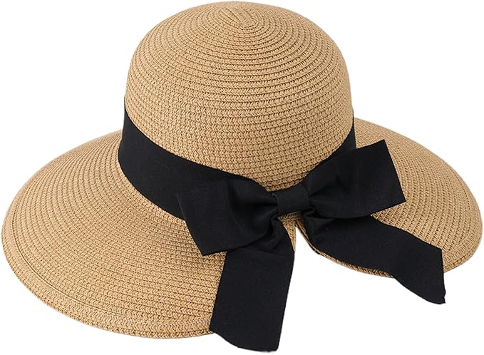 Beach Hats for Women UPF 50+ Summer Beach Straw Hats Foldable Sun Hats with Bow Breathable Wide Brim Hat for Ladies Straw Beach