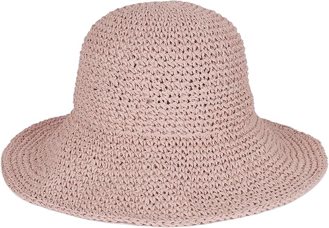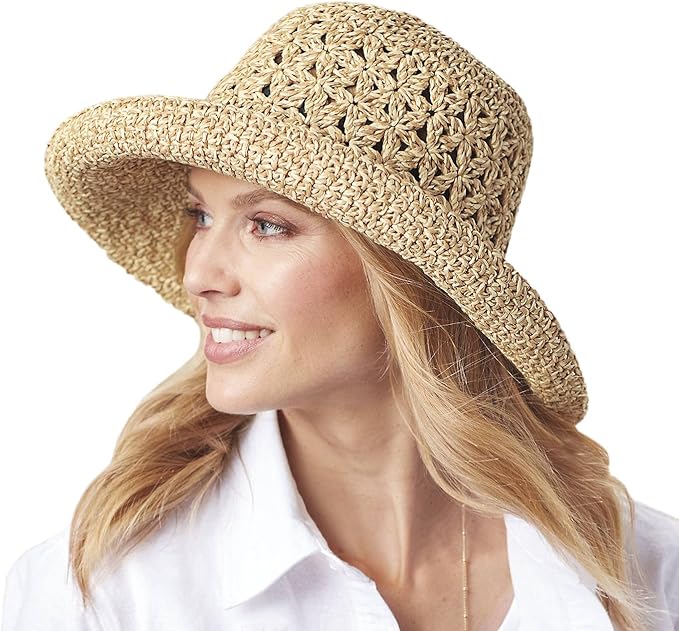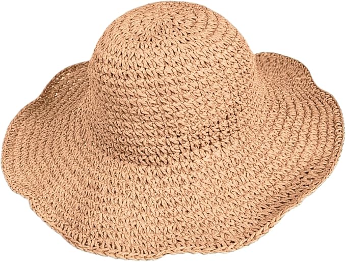 Womens Floppy Straw Sun Hat Foldable Packable Wide Brim Summer Beach Hat Crochet Bucket Hat