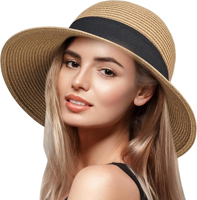 Women Floppy Sun Hat with Wide Brim—Foldable Roll-Up Straw Beach Hat UPF 50
