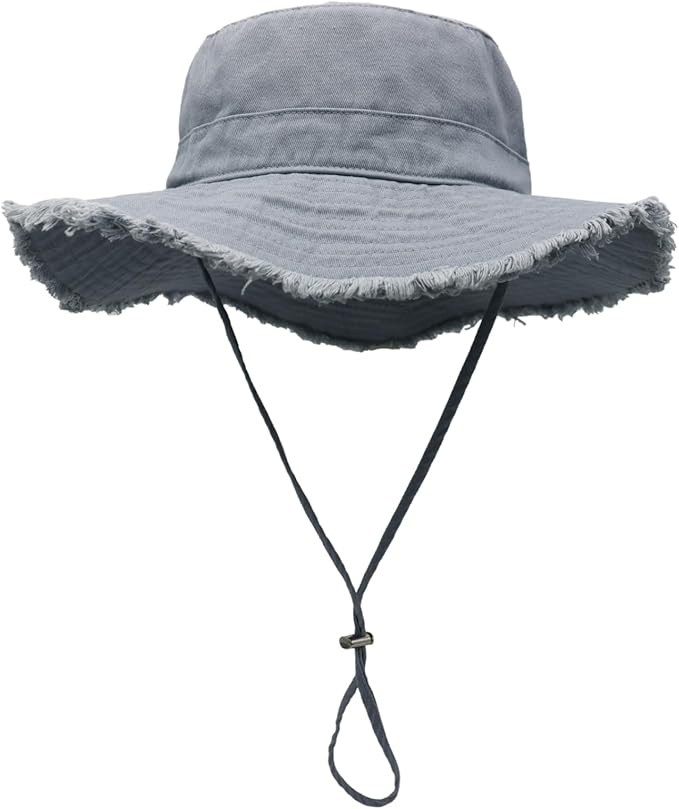 Womens UPF50+ Cotton Wide Brim Sun Hat with Strap Ladies Summer Floppy Hats Packable Women Washed Fringes Bucket Hat