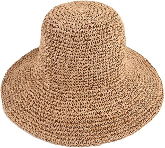 Women Beach Hat Sun Straw Hat Wide Brim Hat Foldable Roll-Up Beachwear Sun Hat Summer Hat (Khaki)