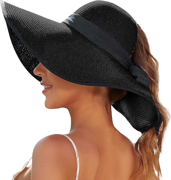 Sun Hats for Women with Ponytail Hole, Wide Brim Beach Hats for Women, Floppy Straw Hat Foldable, Packable Summer Hats Women