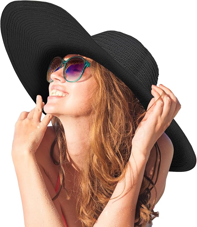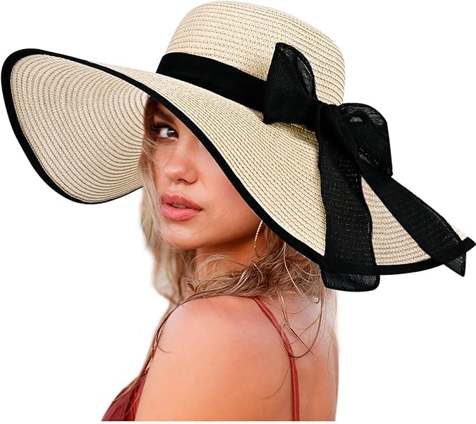 Oversized Sun Straw Hat for Women, UPF 50+ Floppy Wide Brim Summer Hat, Foldable Roll Up Travel Hat Beach Hats for Women
