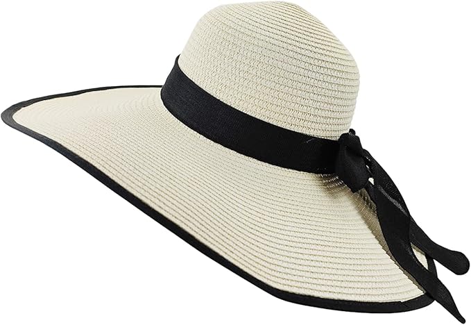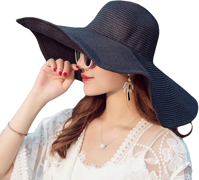 Womens Straw Hat Wide Brim Floppy Beach Cap Adjustable Sun Hat for Women UPF 50+