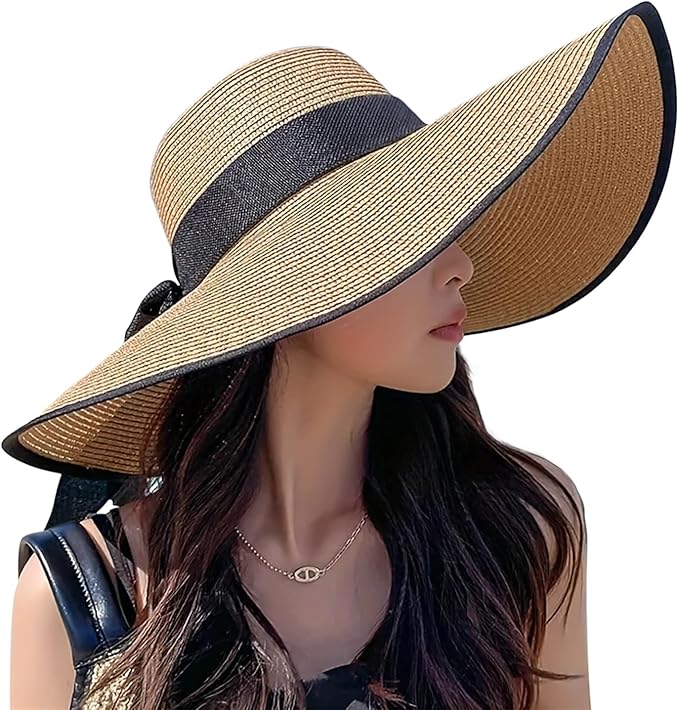 Beach Hats for Women, Wide Brim Sun Straw Hat for Women, Sun Hat UPF 50+ UV Protection